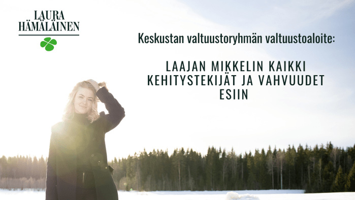 Esittelin 23.1.2023 Kaupunginvaltuustossa Keskustan valtuustoryhmän laatiman aloitteen: Laajan Mikkelin kaikki kehitystekijät ja vahvuudet esiin Mikkeli on innostava maaseutukaupunki, jolla on vahva kaupunkikeskusta ja omaleimainen paikallinen kulttuuri. Paikallisuus on tärkeää elinvoimaa vahvistava tekijä niin yrittäjyyden, kulttuurin kuin palveluidenkin kautta. Mikkeli on kiinnostava sekä valtakunnallisesti että kansainvälisesti. Mielestämme Mikkelin maaseutupolitiikkaa on vahvistettava. Sujuva arki, yrittämisen ja elämisen mahdollisuudet ovat … Jatka lukemista Valtuustoaloite: Laajan Mikkelin kaikki kehitystekijät ja vahvuudet esiin
